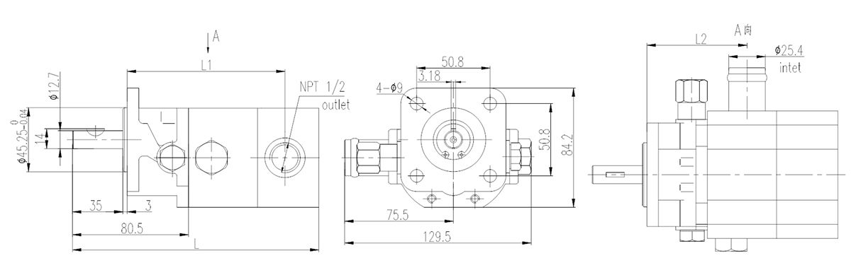 | Модель | Расход (гал/мин) | Давление (Psi) | Объем (куб. дюйм/об) | Скорость (об/мин) | D (мм) | |||