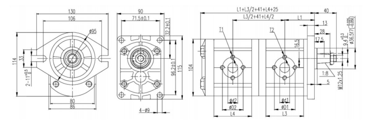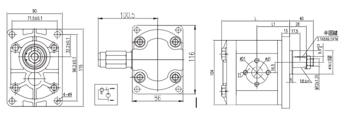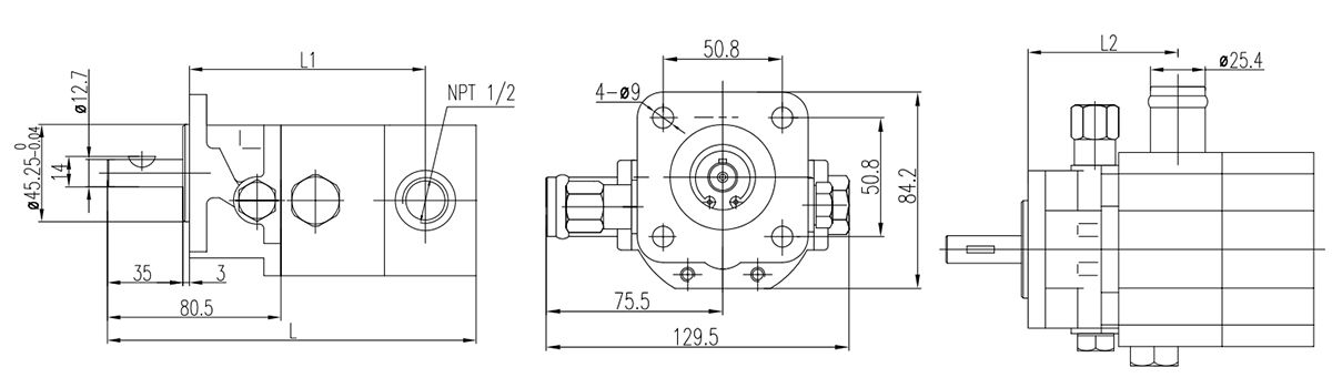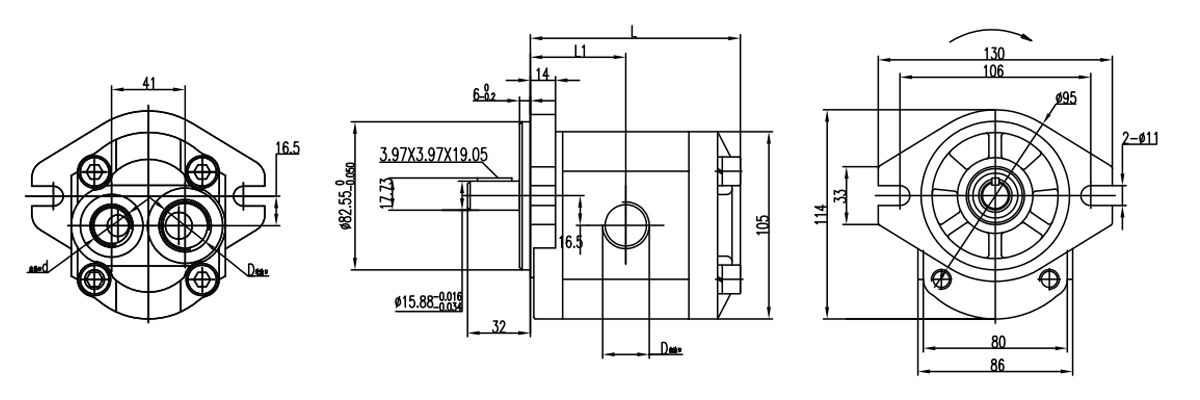 | Модель | Расход (мл/об) | Давление (бар) | Скорость (об/мин) | L | L1 | Впускное отверстие | Выпускное отверстие | |||||||