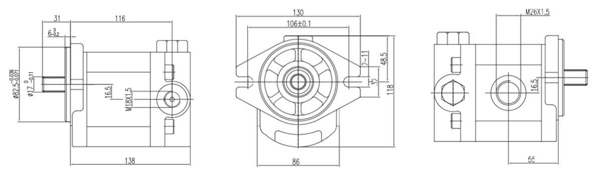 | Модель | Расход (мл/об) | Давление (бар) | Скорость (об/мин) | L | L1 | Впускное отверстие | Выпускное отверстие | |||