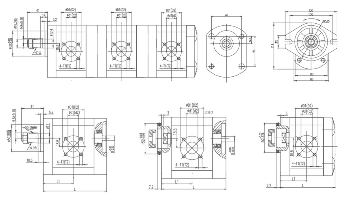 | Номинальное | Макс. | Номинальная | Макс. | Мин. | (мм) | (мм) | ¢D1 | ¢d1 | T1 | ¢D2 | ¢d2 | T2 | ||