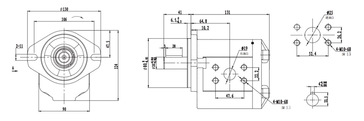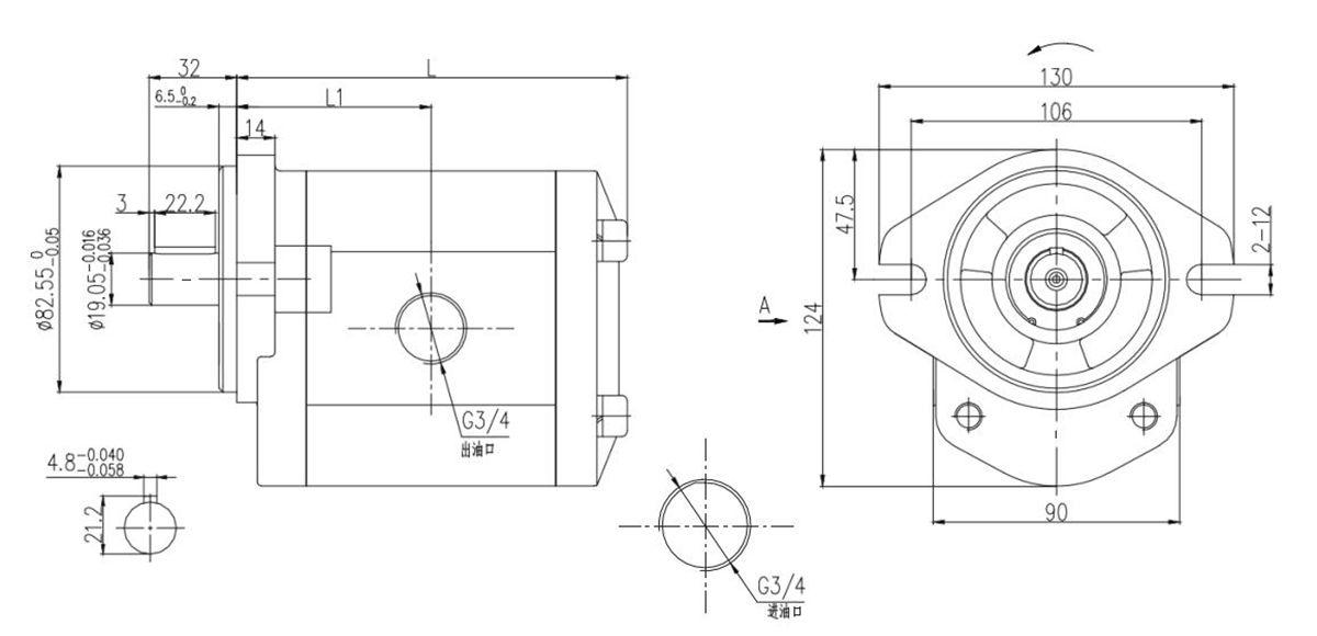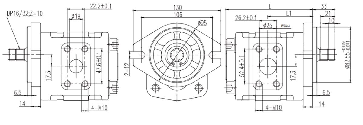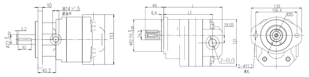 | Модель | Расход (мл/об) | Давление (бар) | Скорость (об/мин) | L (мм) | L1 (мм) | Впускное отверстие | Выпускное отверстие | |||